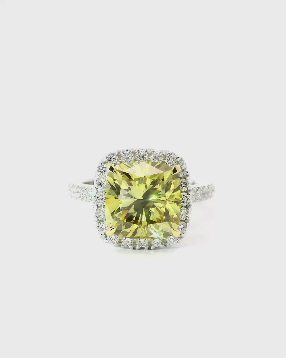 Immerse yourself in the golden radiance of this 18-karat gold ring, where a mesmerizing yellow diamond—cushion-cut for sumptuous layers and shimmer—commands the spotlight, encircled by a sparkling halo of white diamonds that amplify its sunny allure. As a purposeful lavish emblem, it weaves your personal epic of joy and renewal, its vibrant yellow essence a spark of positive vitality that urges you to embrace life's glow with timeless poise. Crafted for those craving adornments that eclipse momentary fads, harmonizing sustainable artistry with the warm clasp of gold to leave an uplifting, eternal mark.