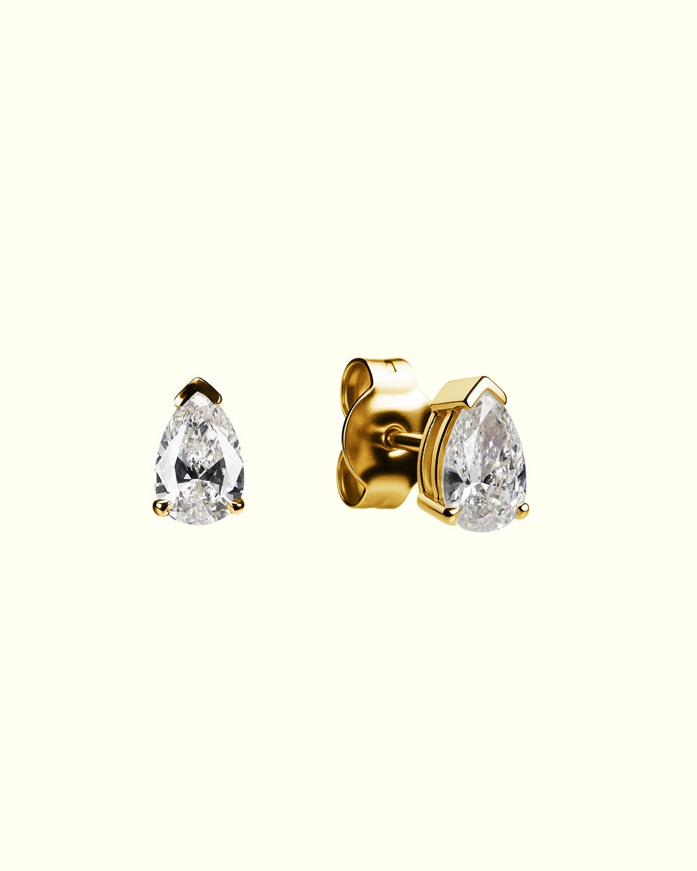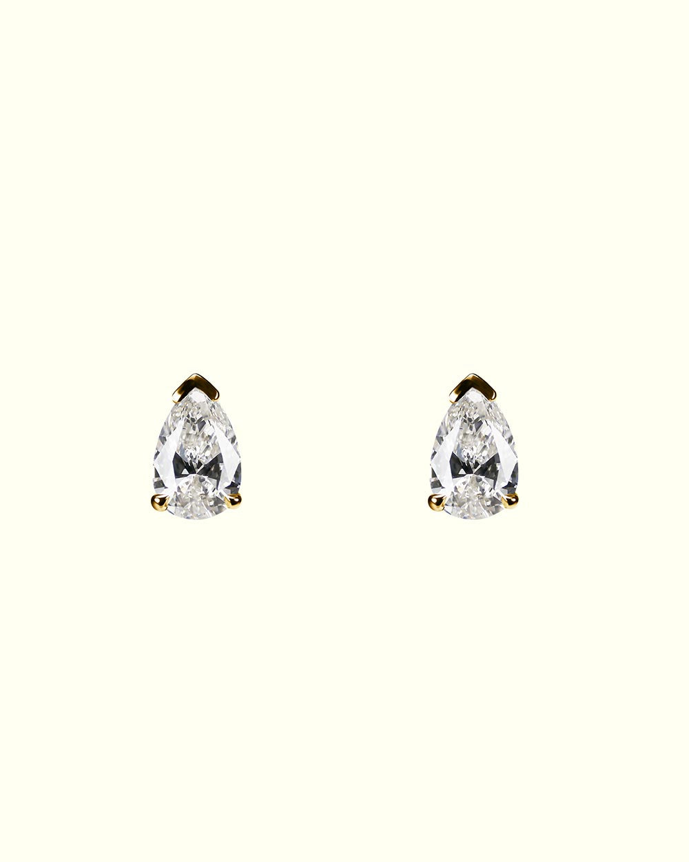 Two pear-cut diamonds rest in a graceful embrace of 18-karat gold—each gem shimmering like a drop of captured light. Their elongated silhouette evokes purity and poise, turning simplicity into a radiant statement of timeless elegance. Perfect for those who seek jewelry that reflects individuality with refined brilliance.