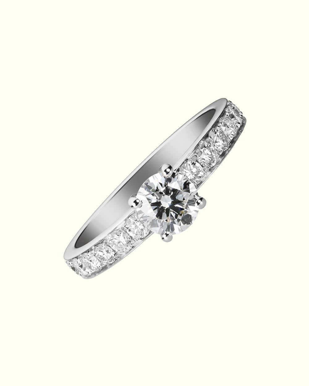 Celebrate brilliance in its purest form with the Luce Solitaire Ring—a harmonious blend of timeless elegance and modern allure. At its heart, a luminous round diamond radiates clarity and light, embraced by a sleek 18-karat gold band. Along the shoulders, a delicate row of sparkling diamonds adds a symphony of shimmer, amplifying the central stone’s glow with graceful sophistication. This piece is more than adornment—it is a reflection of devotion and individuality, designed for those who seek jewelry that speaks of heritage while embracing contemporary refinement. A perfect choice for life’s most meaningful promises.